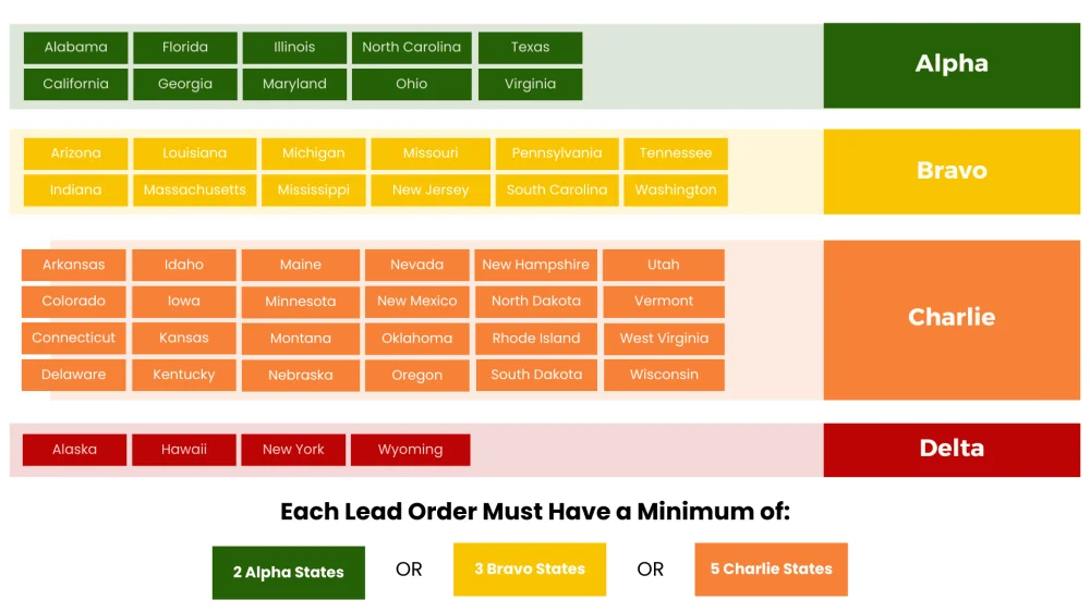 Level Up Leads has a 5 State license minimum. Please add all of the states that you are licensed in and that you will accept leads in. (More States = Faster Fulfillment